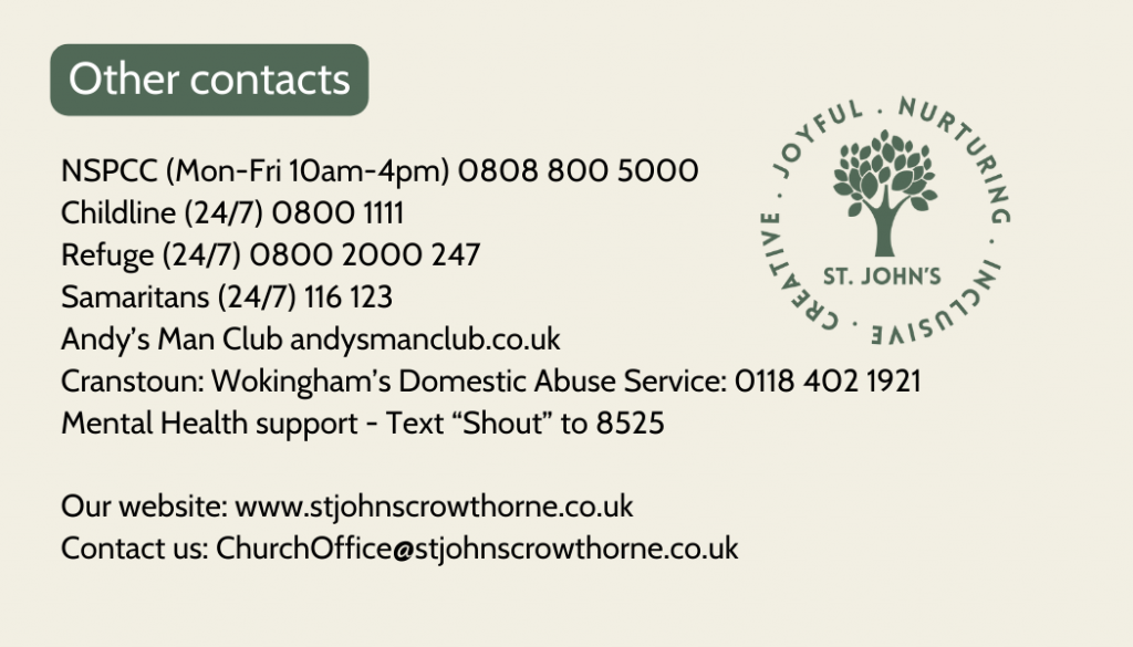 We hope that you find all the information you need on this website. Should you need further information, please call 01344 761521 or email ChurchOffice@stjohnscrowthorne.co.uk