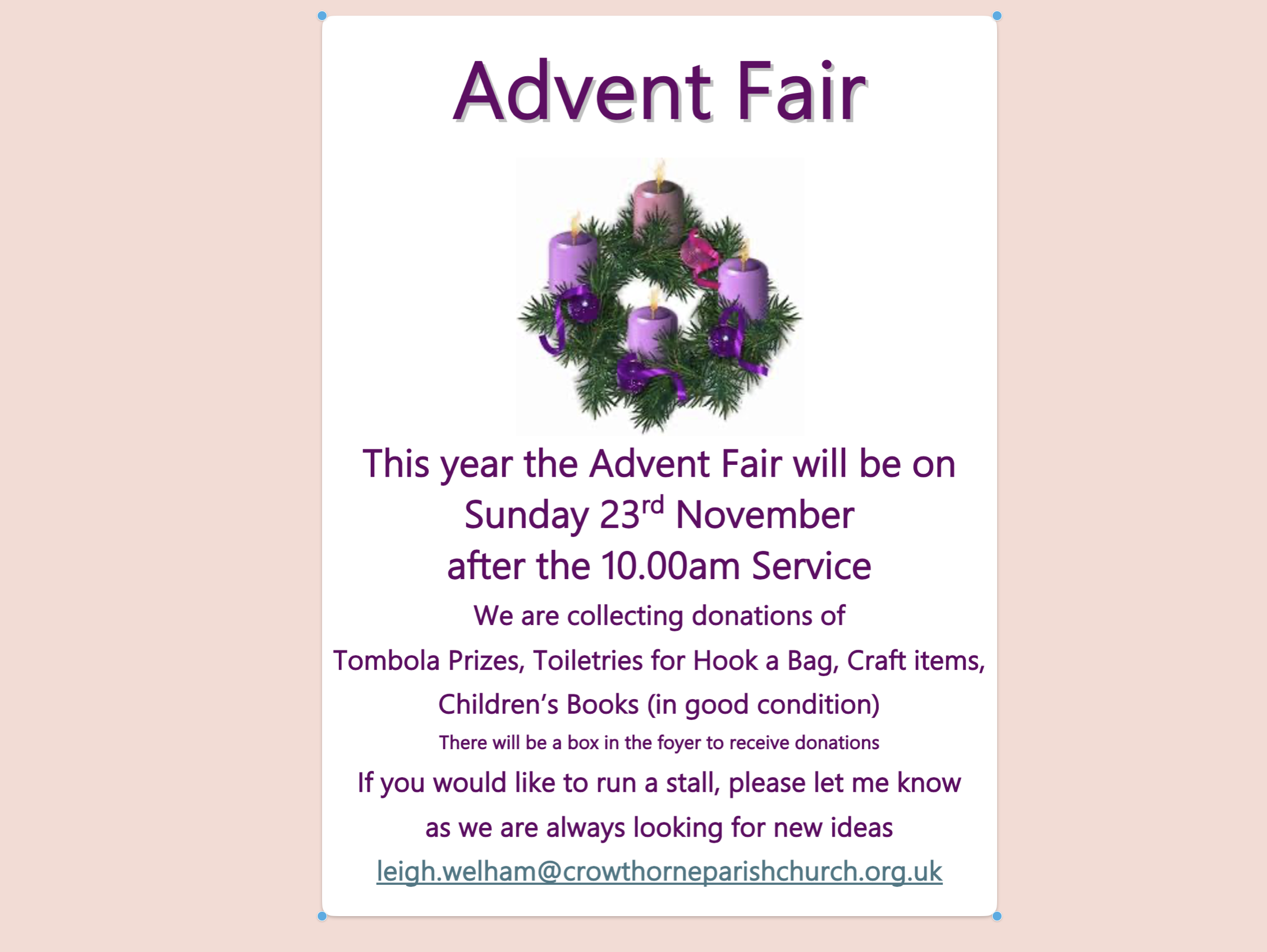 News Advent Fair – 23rd November Posted on October 30, 2025October 30, 2025 by admin Post navigation Come and PlayJohn Rutter REQUIEM