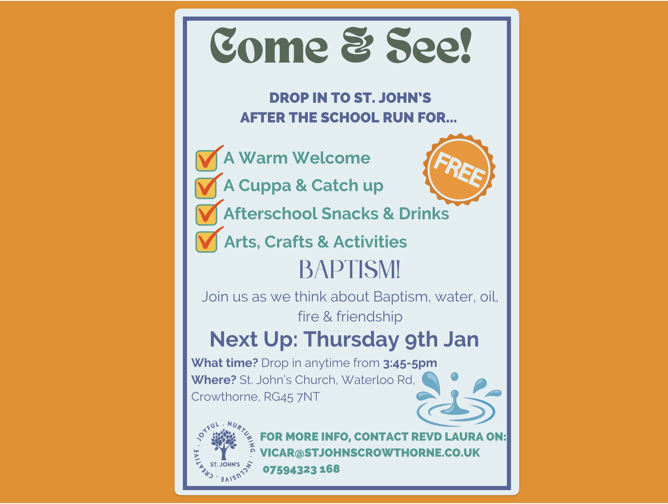 News Come and See Posted on December 19, 2025December 19, 2025 by admin Thursday Jan 9th at 3:45pm Post navigation Baptism and reaffirmation of baptism vowsEpiphany Service
