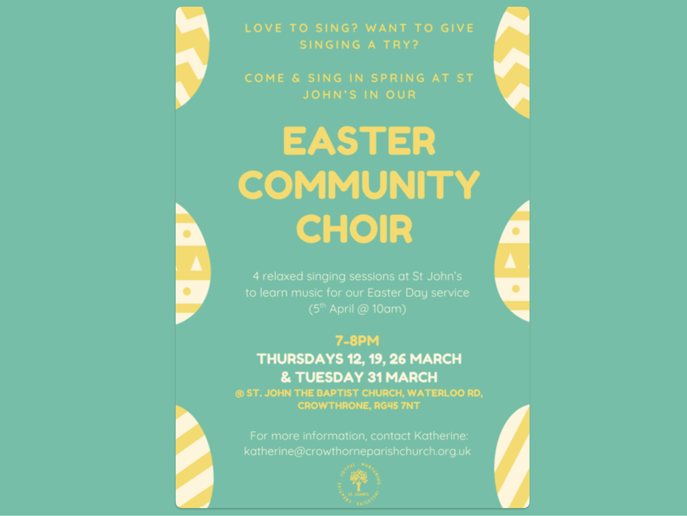 We will be preparing to sing for the Easter Service on 5th April at 10am.