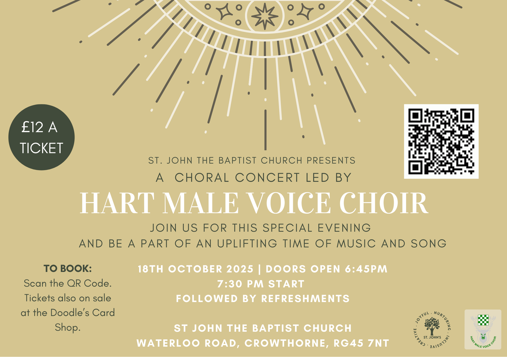 St Johns is hosting the fabulous Hart Male Voice Choir on 18th October. Click here to find out more and purchase tickets.
